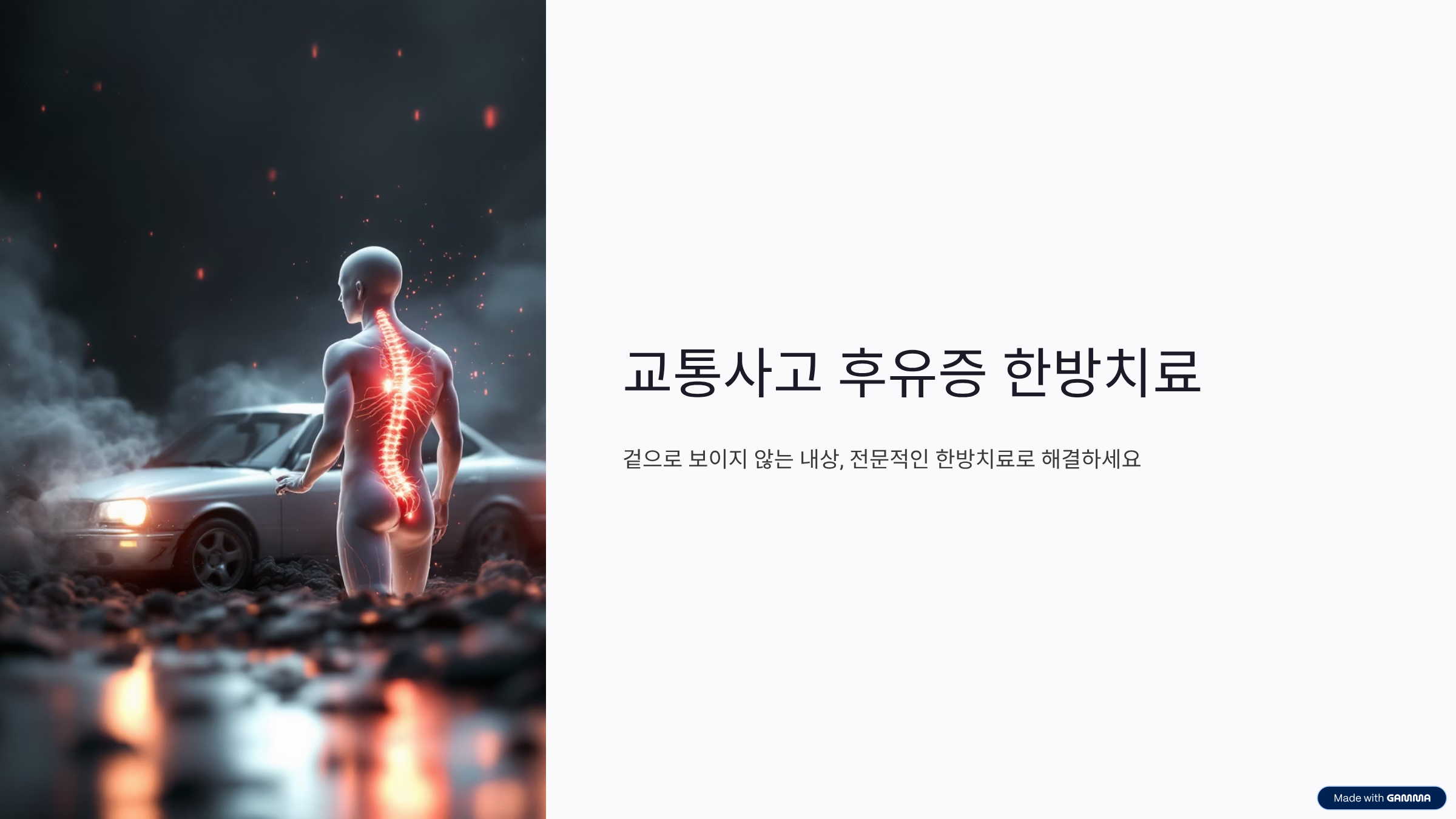 많은 사람이 교통사고 후 ‘나는 멀쩡하다’고 생각합니다. 특히 경미한 접촉사고는 더욱 그렇습니다. 하지만 시간이 지나면서 목, 어깨, 허리 통증은 물론 두통, 어지럼증, 불면증 같은 예상치 못한 증상이 나타나기 시작합니다. 왜 이런 현상이 발생하는 걸까요? 바로 우리 몸의 복잡한 신경과 근골격계가 사고 충격에 미세하게 손상되었기 때문입니다. 엑스레이나 MRI 같은 영상 검사는 뼈의 골절이나 심각한 조직 손상은 잘 잡아내지만, 근육, 인대, 신경의 미세한 염증이나 긴장을 발견하기 어려운 경우가 많습니다. 따라서 영상 검사에서 ‘정상’ 소견을 받았다고 해서 통증이 없는 것은 아닙니다.