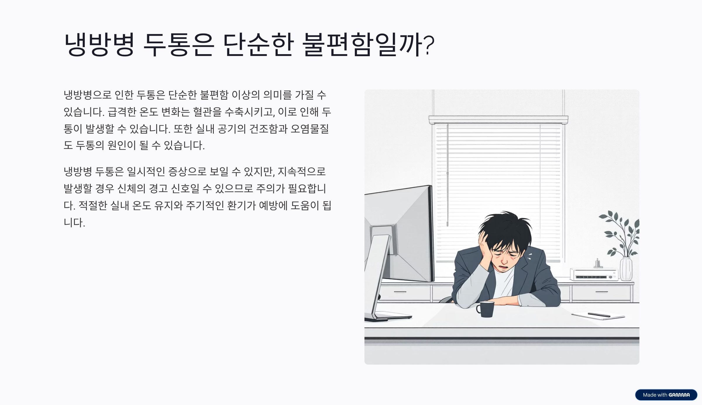 - 1.냉방병 두통은 단순한 불편함일까?